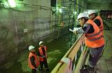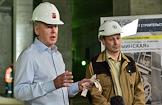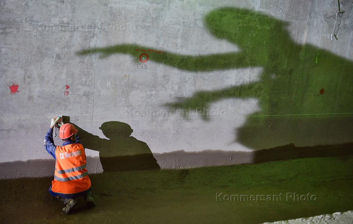 Мэр Москвы Сергей Собянин (слева) во время осмотра строительства станции "Минская" московского метрополитена.