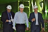 Слева направо: начальник ГУП "Московский метрополитен" Дмитрий Пегов, мэр Москвы Сергей Собянин и заместитель мэра Москвы по вопросам градостроительной политики и строительства Марат Хуснуллин во время осмотра строительства станции "Минская" московского метрополитена.