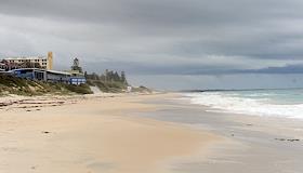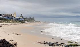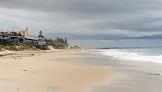 Вид города Коттесло, расположенного на берегу Индийского океана. Волна океана на песке пляжа.