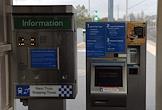 Вид города Коттесло, расположенного на берегу Индийского океана. Информационный терминал и терминал покупки билетов на железнодорожной станции.