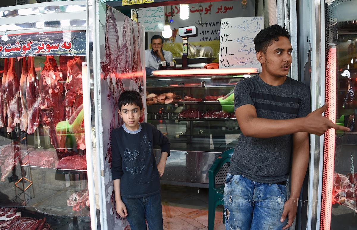 Виды Тегерана. Мясная лавка на Афганском продуктовом рынке.