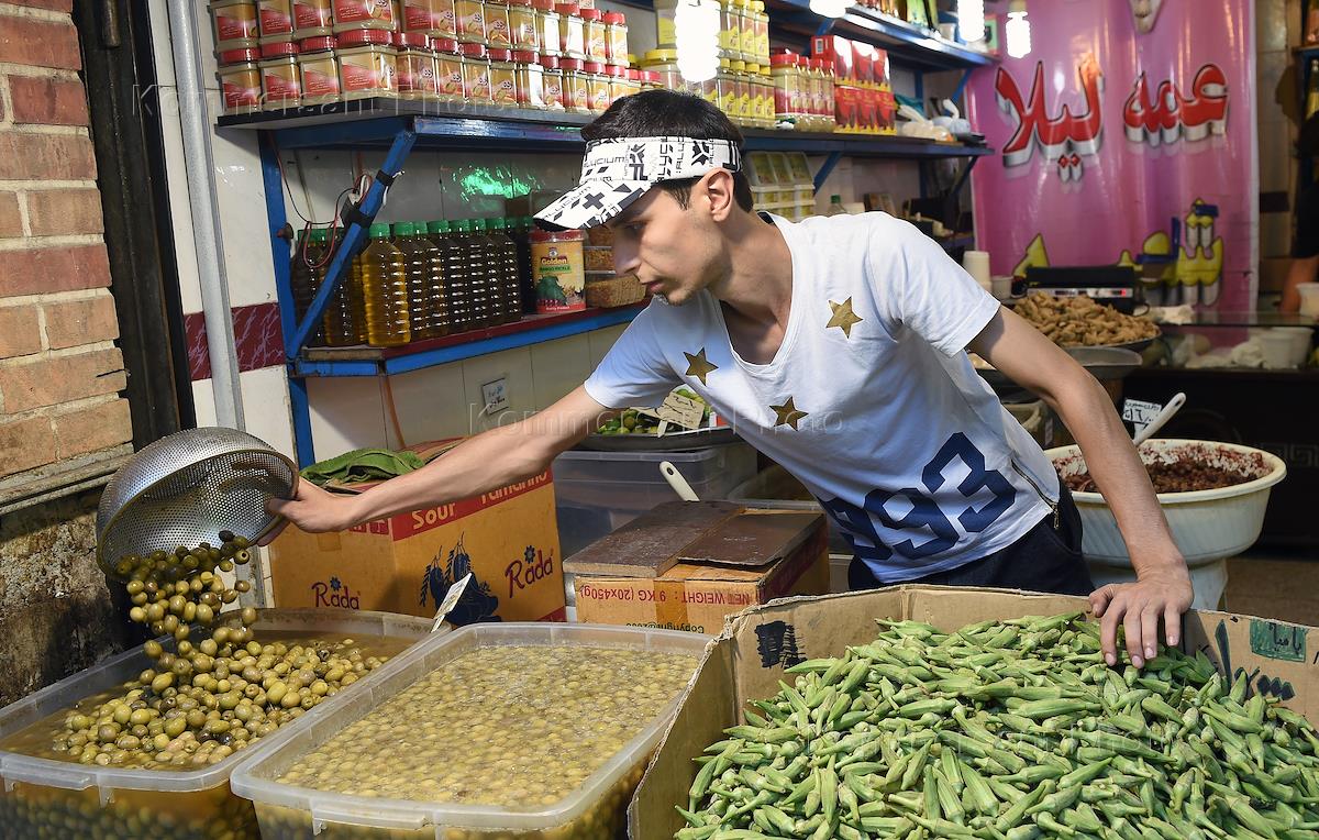 Жанровая фотография. Виды Тегерана. Торговец рынка оливками и фасолью на базаре.