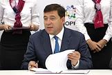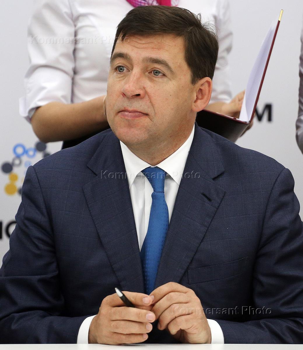 Международная промышленная выставка "Иннопром-2016" прошла в выставочном центре "Екатеринбург-Экспо". День второй. Губернатор Свердловской области Евгений Куйвашев во время подписания трехстороннего соглашения, по строительству высокоскоростной магистрали между Челябинском и Екатеринбургом.