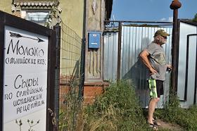 Жанровая фотография. Виды села Лох. Объявление у входа в дом "Молоко альпийских коз". Сыры по семейным испанским рецептам".