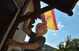 Жанровая фотография. Виды села Лох. Фермер села Лох Юрий Карамзин в соломенной шляпе на фоне флага Испании.