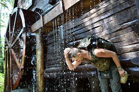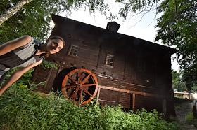 Жанровая фотография. Турист с рюкзаком на мельнице в селе Лох.