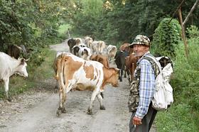 Жанровая фотография. Виды села Лох. Пастух со стадом коров.