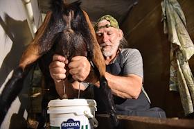 Жанровая фотография. Виды села Лох. Фермер села Лох Юрий Карамзин во время дойки козы.