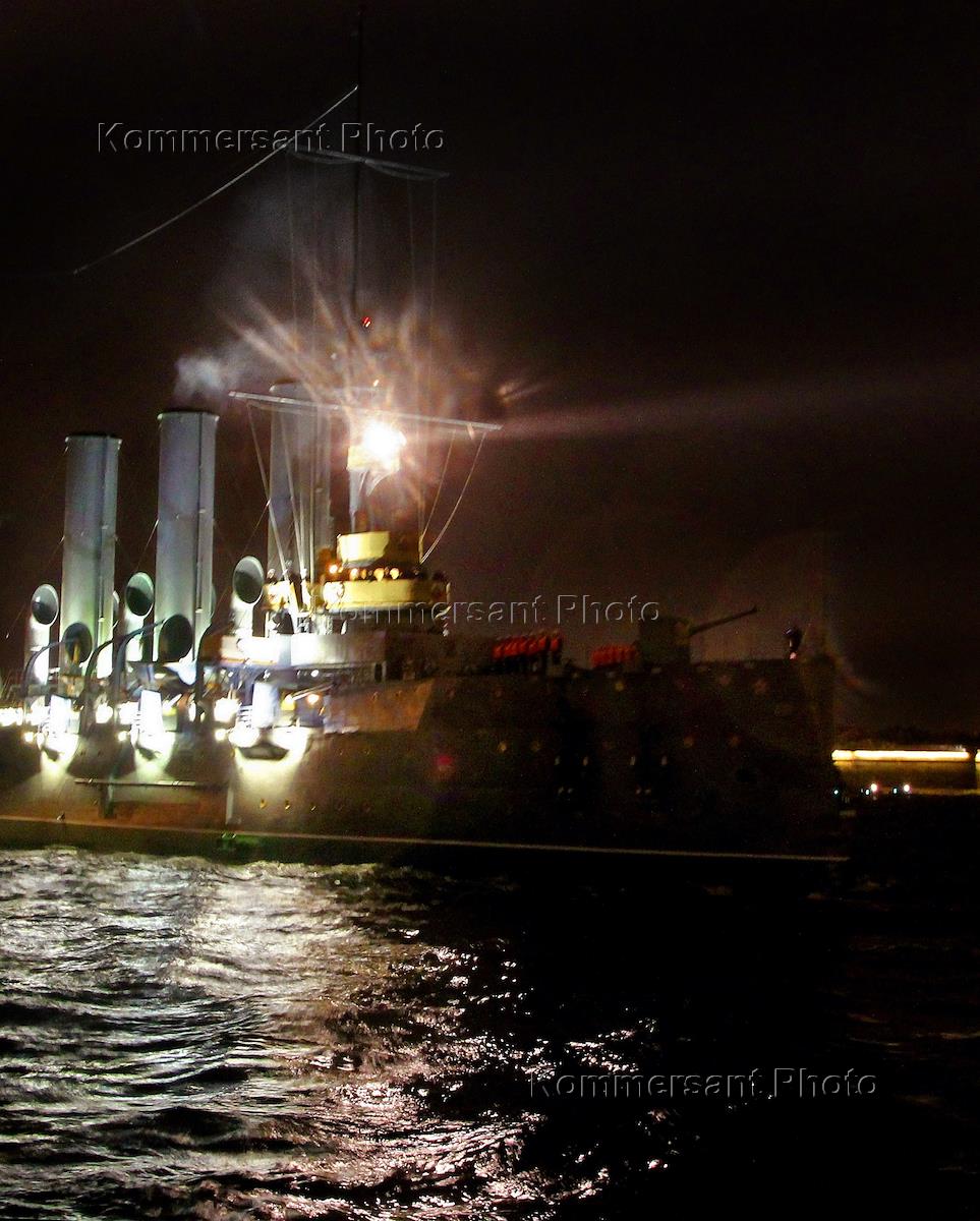 Возвращение крейсера "Аврора" из Кронштадта к месту стоянки после двухетней реставрации.