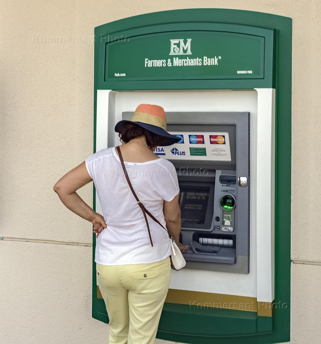 Genre photo. Entrance to a Renaissance Credit bank branch.
