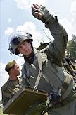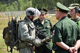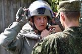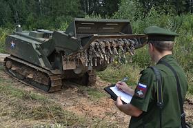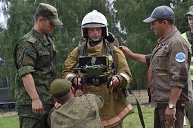 Военнослужащие во время демонстрации вариантов приемов разминирования и работ на пожаре роботов-саперов на полигоне инженерной бригады СЗВО.