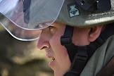 Военнослужащий во время демонстрации вариантов приемов разминирования и работ на пожаре роботов-саперов на полигоне инженерной бригады СЗВО.