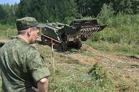 Демонстрация вариантов приемов разминирования и работ на пожаре роботов-саперов военнослужащами инженерной бригады СЗВО прошла на полигоне.