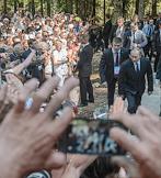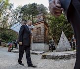 Рабочая поездка президента России Владимира Путина в Словению. Президент России Владимир Путин (справа) во время участия в мемориальной церемонии по случаю 100-летия возведения у перевала Вршич русской часовни в память о российских воинах, погибших в этих местах в годы Первой мировой войны.