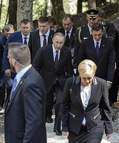 Рабочая поездка президента России Владимира Путина в Словению. Мемориальная церемонии по случаю 100-летия возведения у перевала Вршич русской часовни в память о российских воинах, погибших в этих местах в годы Первой мировой войны.