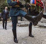 Рабочая поездка президента России Владимира Путина в Словению. Президент России Владимир Путин во время участия в мемориальной церемонии по случаю 100-летия возведения у перевала Вршич русской часовни в память о российских воинах, погибших в этих местах в годы Первой мировой войны.