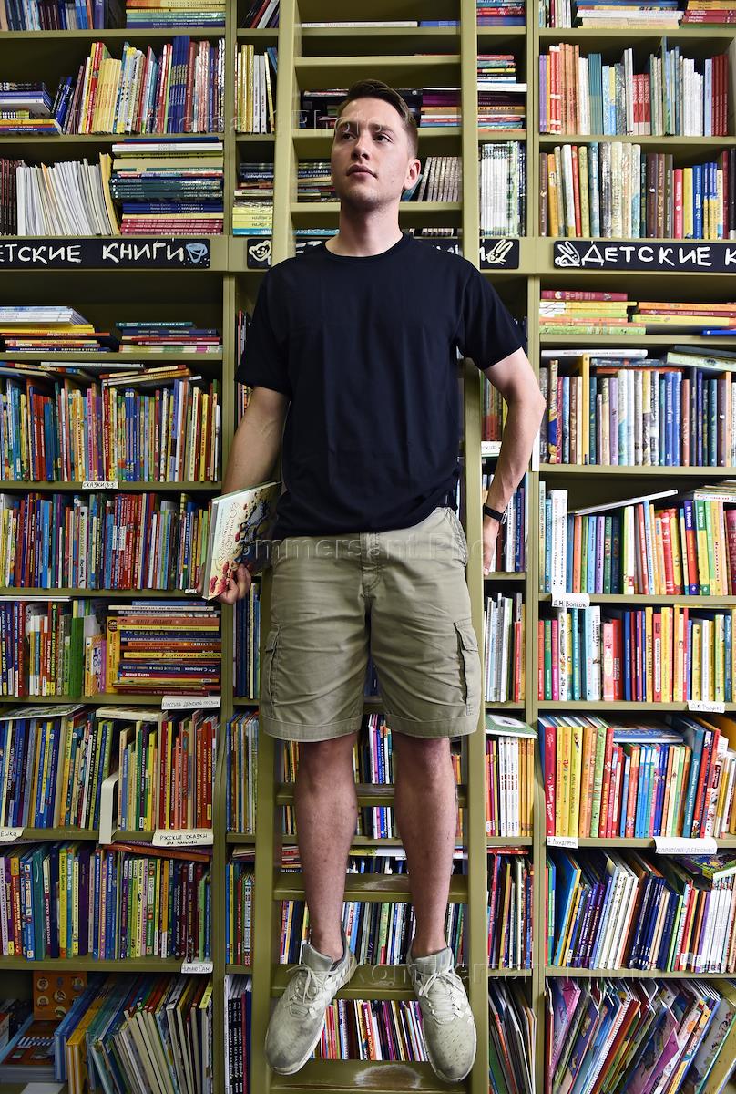 Портрет в фотопроект о детях августа 1991. Выпускник факультета социальных наук РГПУ им. Герцена Дмитрий Николюк во время работы в книжном магазине "Подписные издания".