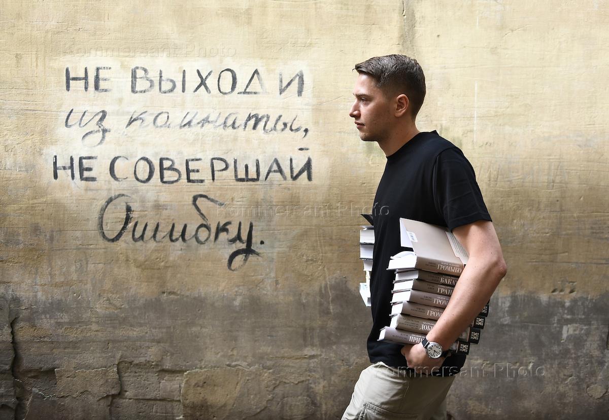 Фотопроект о детях августа 1991. Выпускник факультета социальных наук РГПУ имени А.Герцена Дмитрий Николюк (в центре)работает в книжном магазине "Подписные издания".