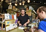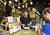 Фотопроект о детях августа 1991. Выпускник факультета социальных наук РГПУ им. Герцена Дмитрий Николюк (в центре) на своем рабочем месте в книжном магазине "Подписные издания".