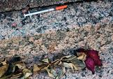 Жанровая фотография. Одноразовый шприц и засохшая роза на граните.