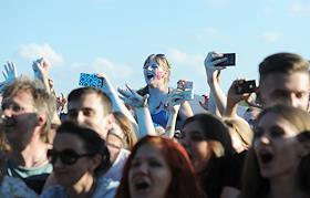 Международный фестиваль "Рок за Бобров" на аэродроме "Боровая" в Минске. Зрители во время выступления рэппера Noize MC.