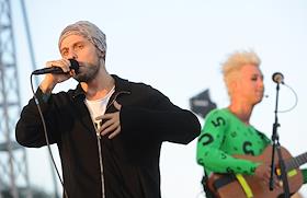 Международный фестиваль "Рок за Бобров" на аэродроме "Боровая". Рэппер Noize MC (Алексеев Иван) во время фестиваля.