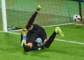 РОСГОССТРАХ - Чемпионат России по футболу. Премьер-лига. 2 тур. Матч между командами "Локомотив" (Москва) и "Томь" (Томск) прошел на стадионе "Локомотив". Вратарь Маринато Гилерме во время матча.