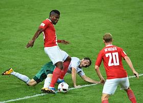 РОСГОССТРАХ - Чемпионат России по футболу. Премьер-лига. 2 тур. Матч между командами "Локомотив" (Москва) и "Томь" (Томск) на стадионе "Локомотив". Игрок команды "Локомотив" Петар Шкулетич (в центре) во время матча.
