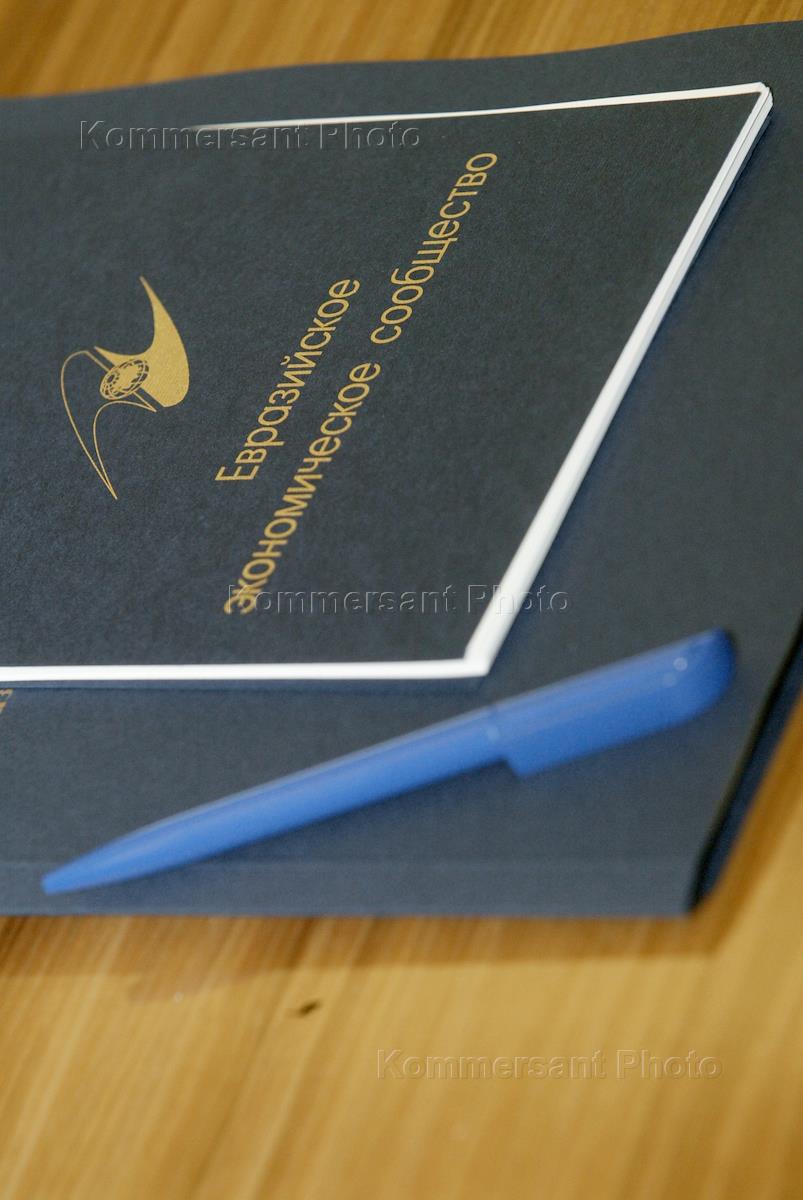 A paper-folder marked with the Euro-Asian Economic Community (EvrAzES) logotype.