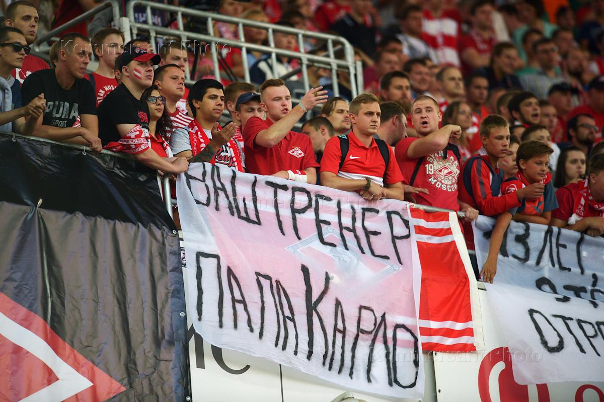 РОСГОССТРАХ - Чемпионат России по футболу. Премьер-лига. 2 тур. Матч между командами "Спартак" (Москва) и "Крылья Советов" (Самара) на стадионе "Открытие Арена". Болельщики команды "Спартак" на трибуне во время матча.