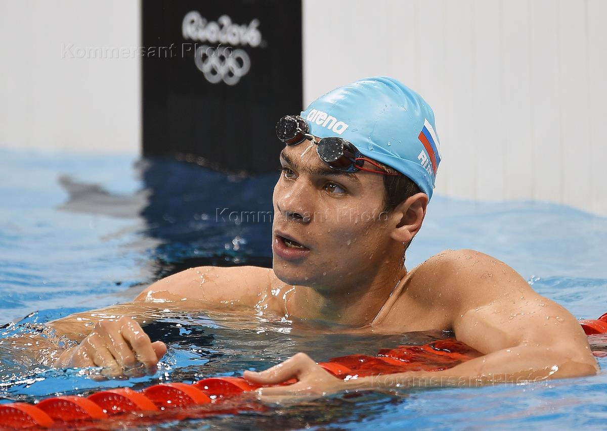 XXXI Летние Олимпийские игры в Рио-де-Жанейро 2016. Полуфинал соревнованиях по плаванию среди мужчин на дистанции 200 м баттерфляем. Член олимпийской сборной команды России по плаванию Евгений Коптелов во время соревнований.