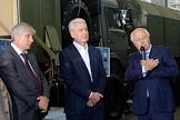 Мэр Москвы Сергей Собянин (в центре) и генеральный директор "Лианозовский электромеханический завод" (ЛЭМЗ) Геннадий Бендеровский (слева) во время посещения ЛМЭЗ.