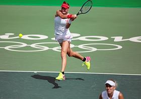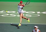 XXXI Летние Олимпийские игры в Рио-де-Жанейро. Полуфинал в парном разряде женского турнира по теннису. Члены олимпийской сборной команды России по теннису Елена Веснина (слева) и Екатерина Макарова (справа) во время игры.