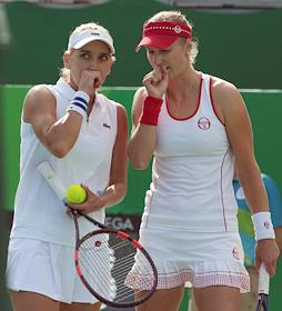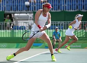 XXXI Летние Олимпийские игры в Рио-де-Жанейро. Полуфинал в парном разряде женского турнира по теннису. Члены олимпийской сборной команды России по теннису Екатерина Макарова (слева) и Елена Веснина (справа) во время игры.
