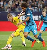 Чемпионат России по футболу. Премьер-лига. 3-ий тур. Матч между командами "Зенит" (Санкт-Петербург) и "Ростов" (Ростов). Игрок команды "Зенит" Александр Кокорин (справа) во время матча.