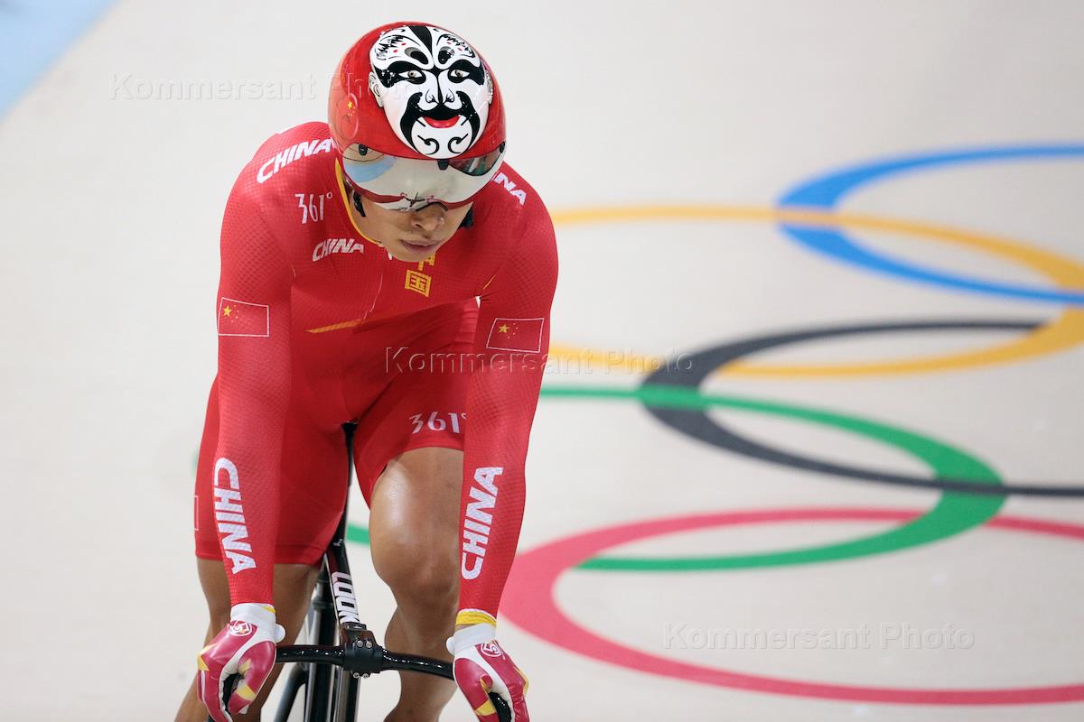 XXXI летние Олимпийские игры в Рио-де-Жанейро. Cоревнования по велоспорту на треке среди мужчин. Член сборной России Денис Дмитриев во время соревнований.