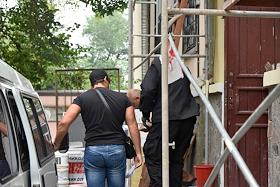 Один из подозреваемых в подготовке терактов на территории Крыма Андрей Захтей (в центре) после заседания Киевского районного суда Симферополя.