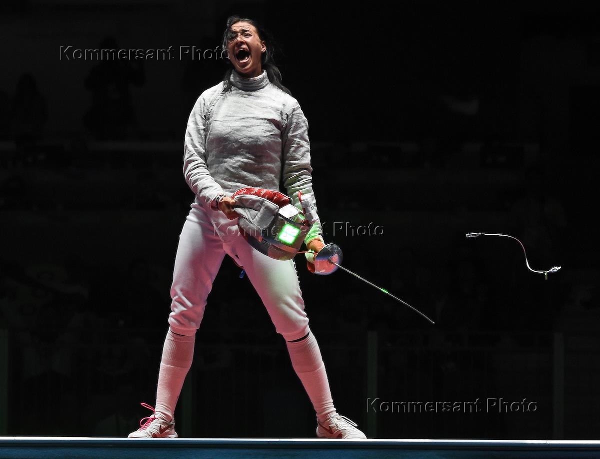 XXXI летние Олимпийские игры в Рио-де-Жанейро. Член сборной России, завоевавшая золотую медаль в командном первенстве по фехтованию на саблях среди женщин, Яна Егорян в финале соревнований.
