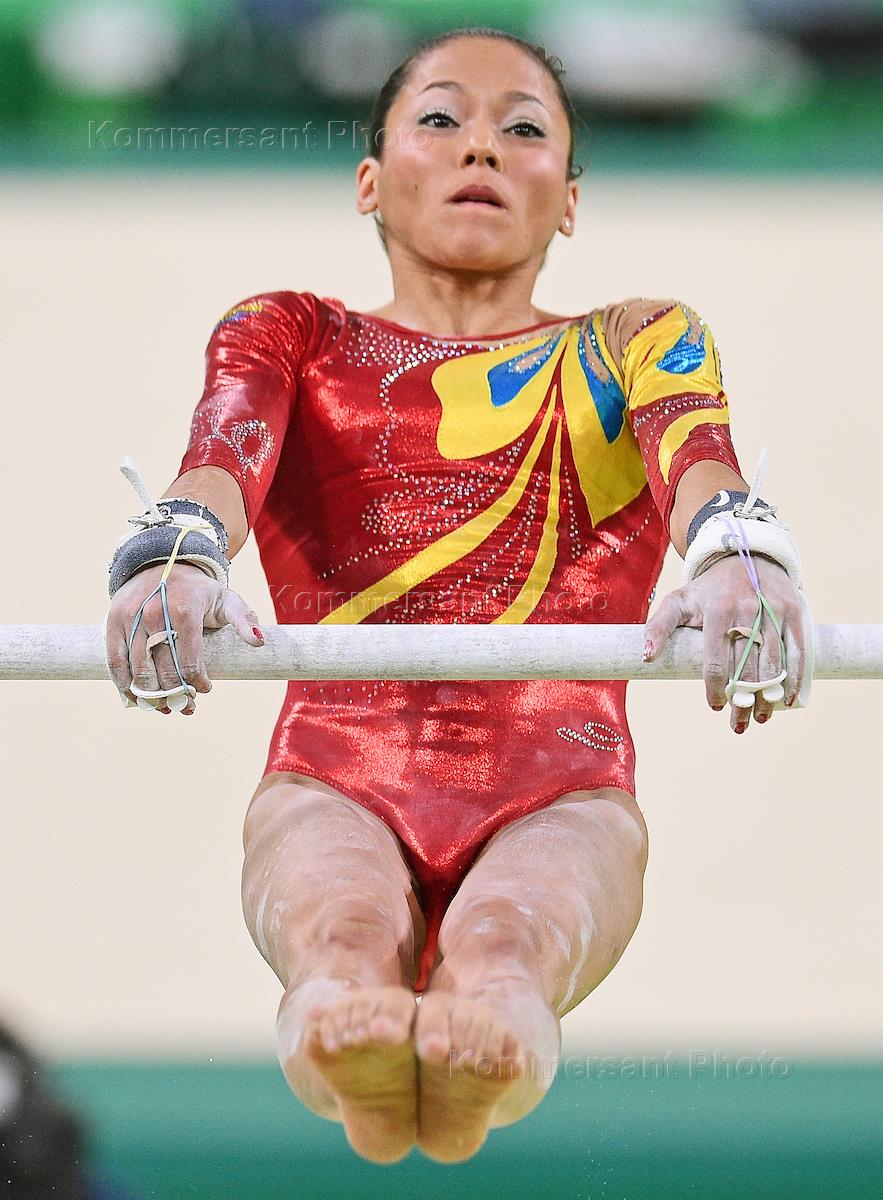 XXXI летние Олимпийские игры в Рио-де-Жанейро. Соревнования по сопртивной гимнастике среди женщин. Член олимпийской сборной команды КНР Шан Чуньсун во время соревнований.
