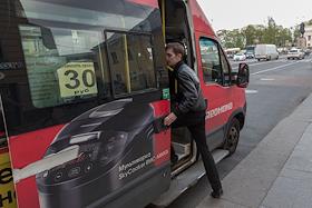 Жанровая фотография. Пасссажир садится в маршрутное такси на Невском проспекте.