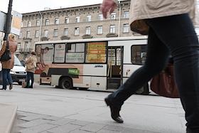 Жанровая фотография. Остановка маршрутного, коммерческого транспорта на Невском проспекте.