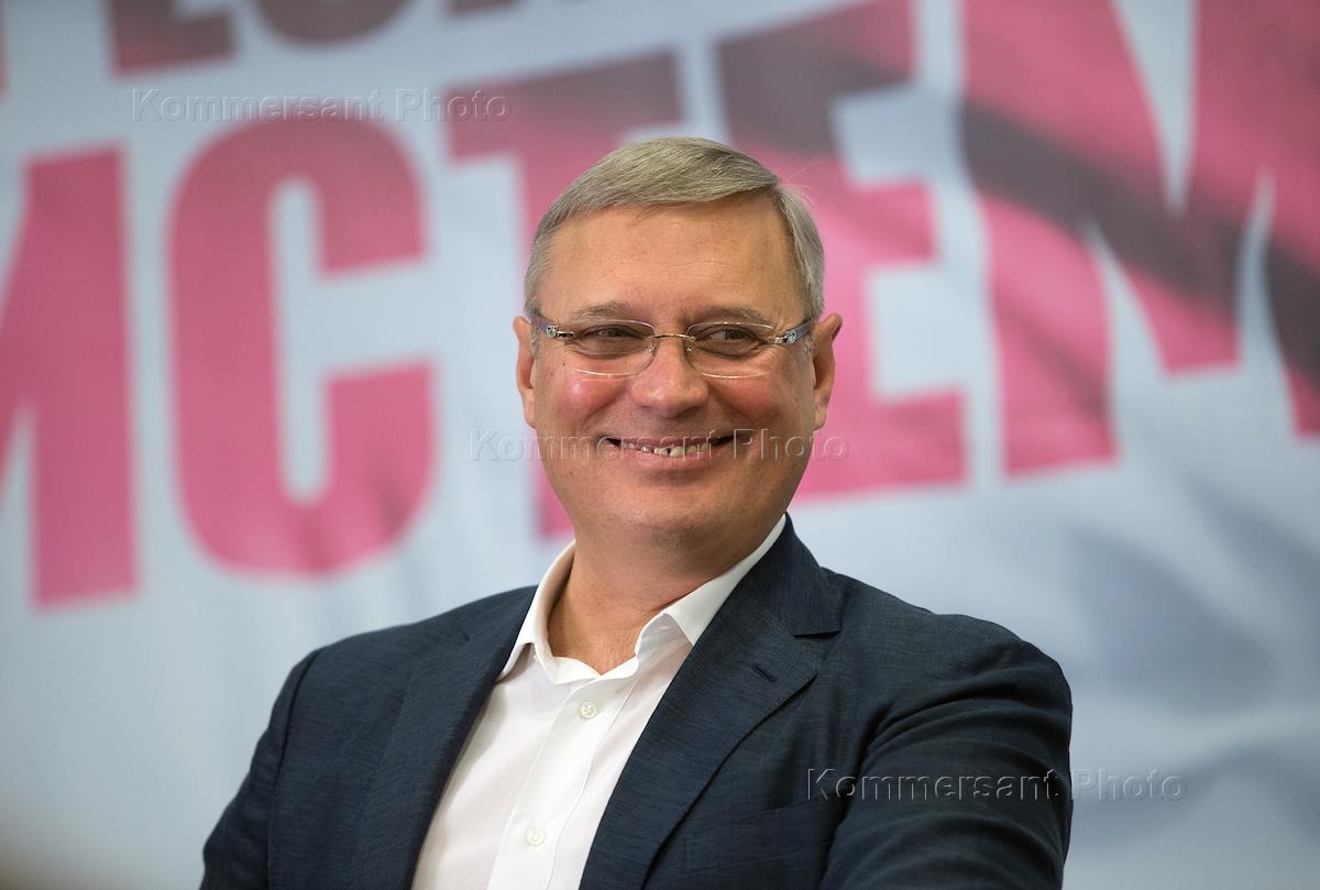 Председатель партии "РПР-Парнас" Михаил Касьянов во время брифинга в офисе партии "Парнас".