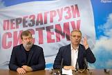 Депутат Саратовской области областной думы Вячеслав Мальцев(слева) и председатель Российского народно-демократического союза Михаил Касьянов (справа) во время предвыборной встречи с избирателями.