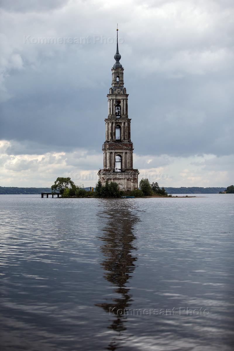 Виды Калязина. Затопленная колокольня Никольского собора.
