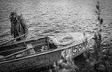 Жанровая фотография. Угличское водохранилище. Мужчина в куртке у лодки.