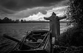Жанровая фотография. Угличское водохранилище. Мужчина на весельной лодке.