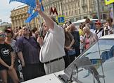Лидер Либерально-демократической партии России (ЛДПР) Владимир Жириновский (в центре) во время обращения к народу на Манежной площади.