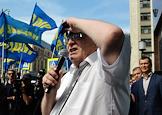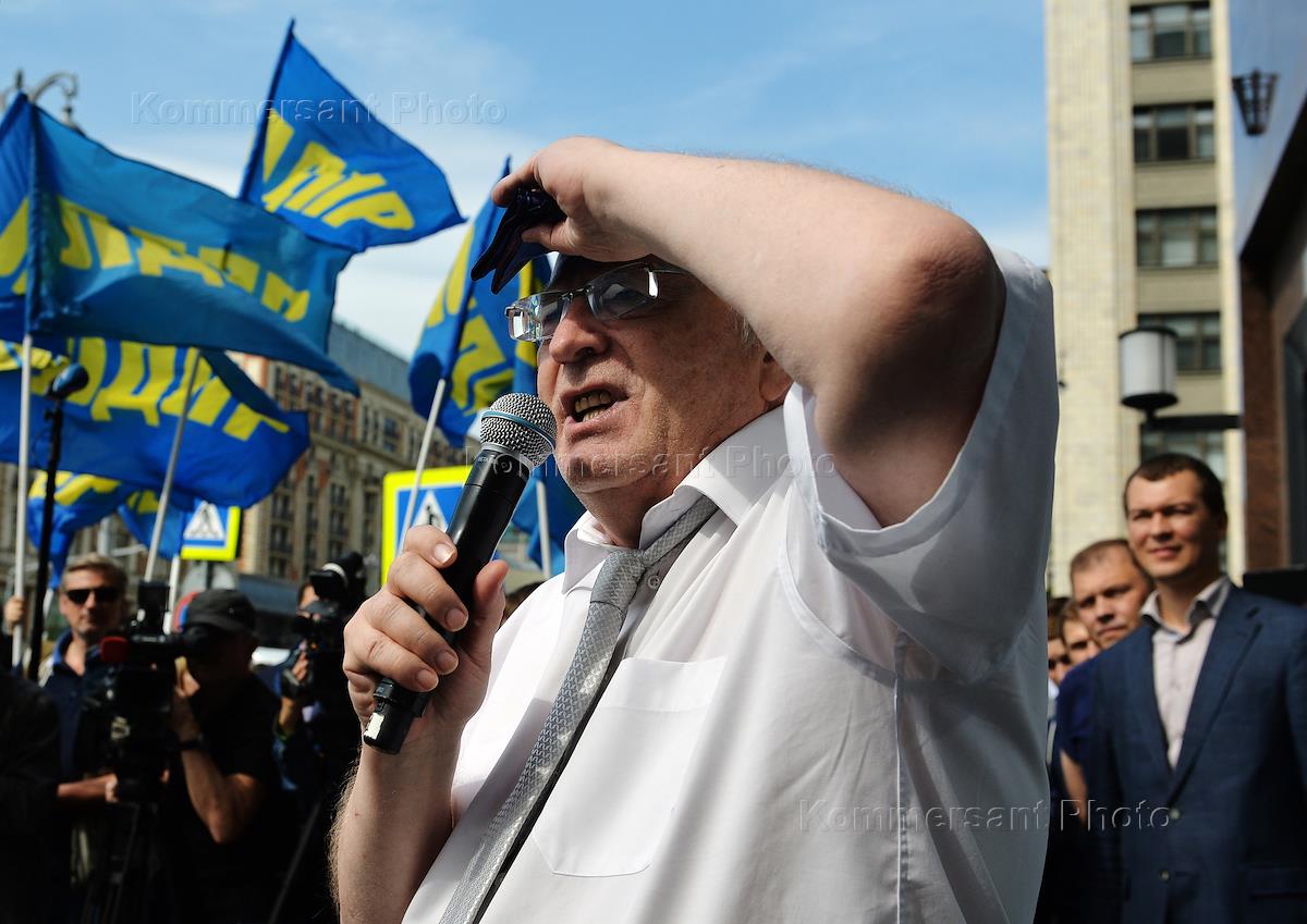 Лидер партии Либерально-демократической партии России (ЛДПР) Владимира Жириновского во время мероприятий партии на Манежной площади, организованных к годовщине событий августа 1991 года.