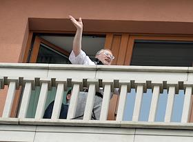 Лидер Либерально-демократической партии России (ЛДПР) Владимир Жириновский на фоне здания факультета Московского государственного университета им. М. В. Ломоносова - Института стран Азии и Африки (ИСАА).