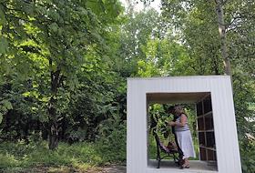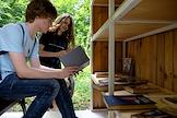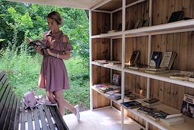 Пункт буккросинга (книжный обмен) на территории парка "Сокольники".